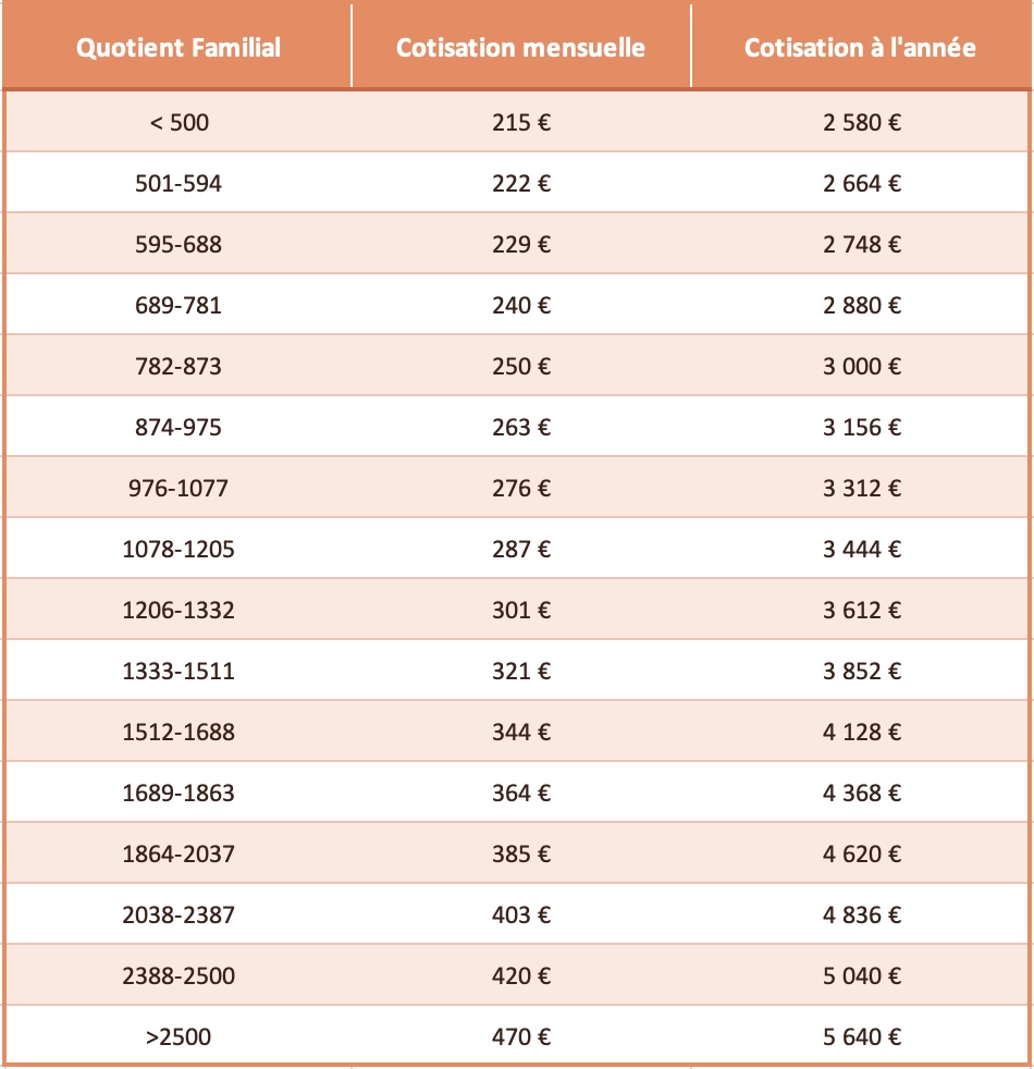 Les tarifs varient selon la situation familiale.